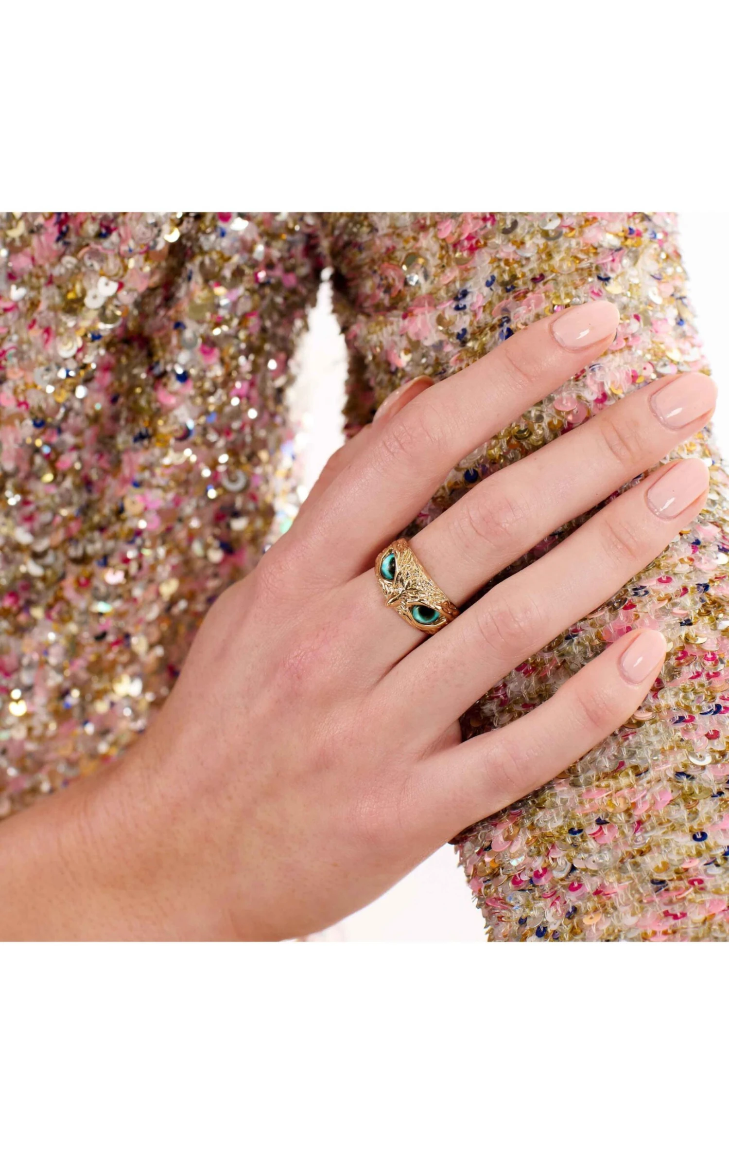 Résolument unique, la bague Selim est imprégnée d’une aura divine grâce aux deux yeux d’oiseau qui encerclent son corps. Dorée à l’or fin et subtilement martelée, la bague Selim s’ouvre à l’arrière, offrant ainsi la possibilité de l’ajuster à toutes les tailles. Pièce d’exception à l’identité forte et emblématique, elle suscitera l’admiration, à tous les coups!