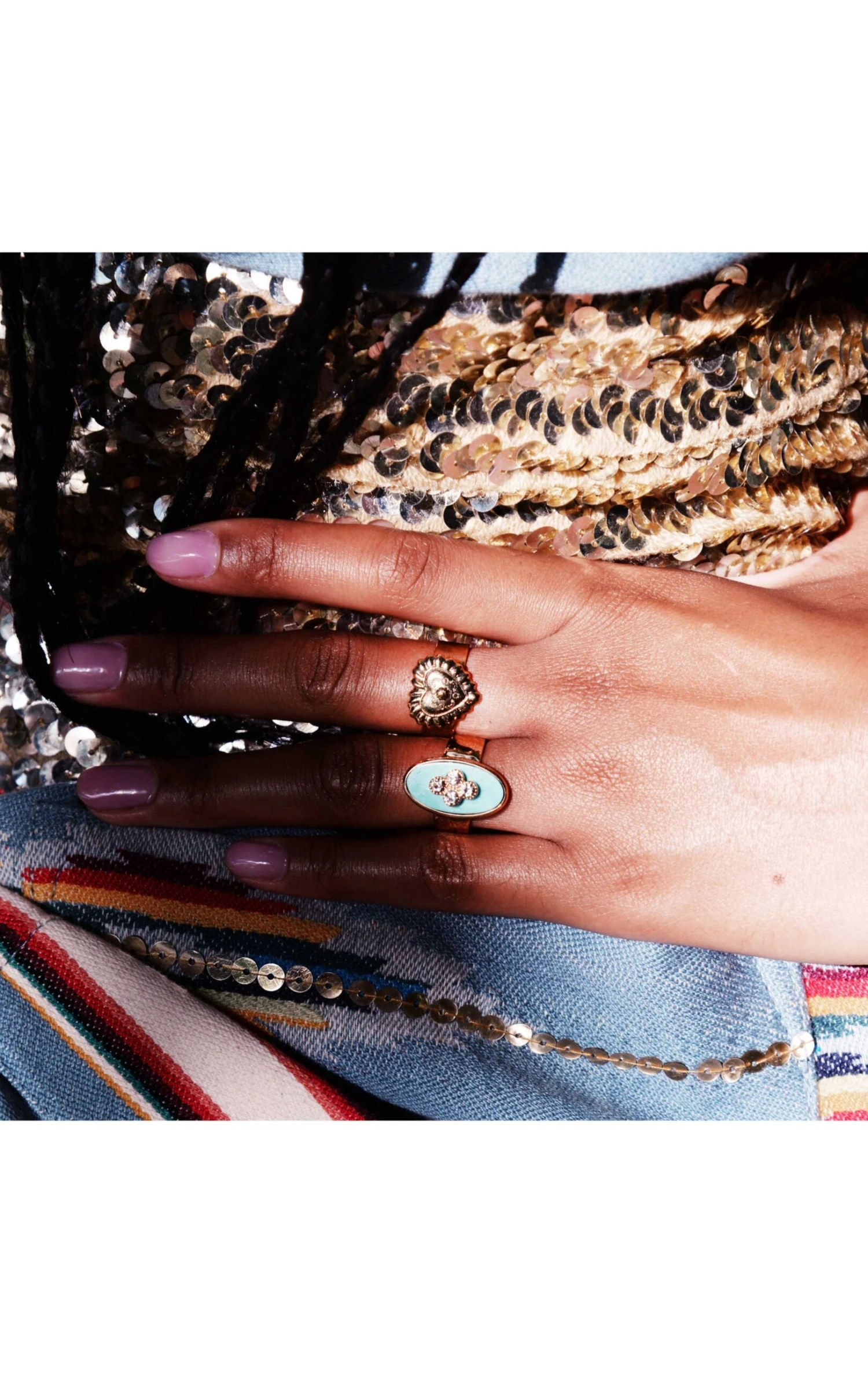L’indispensable bague ouverte à l’arrière, pour plaire au plus grand nombre! Bague dorée à l’or fin, au médaillon central travaillé en forme de cœur, entouré de godrons. Le centre est sculpté de petits motifs Navajo. Une pièce adorable que l’on pourra porter au petit doigt, pour revisiter la chevalière version Nouveau-Mexique chic. Ce bijou est fait à la main.