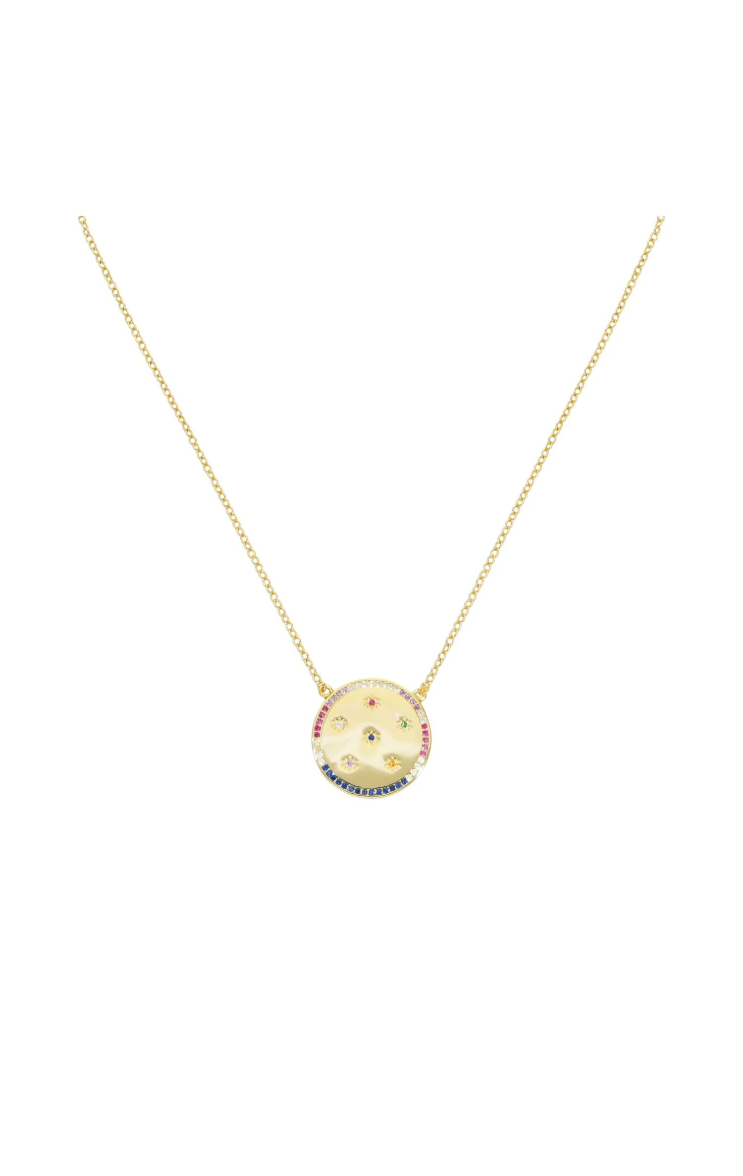 Collier ras de cou doré à l’or fin, composé d’une ravissante pièce centrale décorée de petites étoiles avec des stass de couleurs tout autour, pavée de strass multi couleurs.