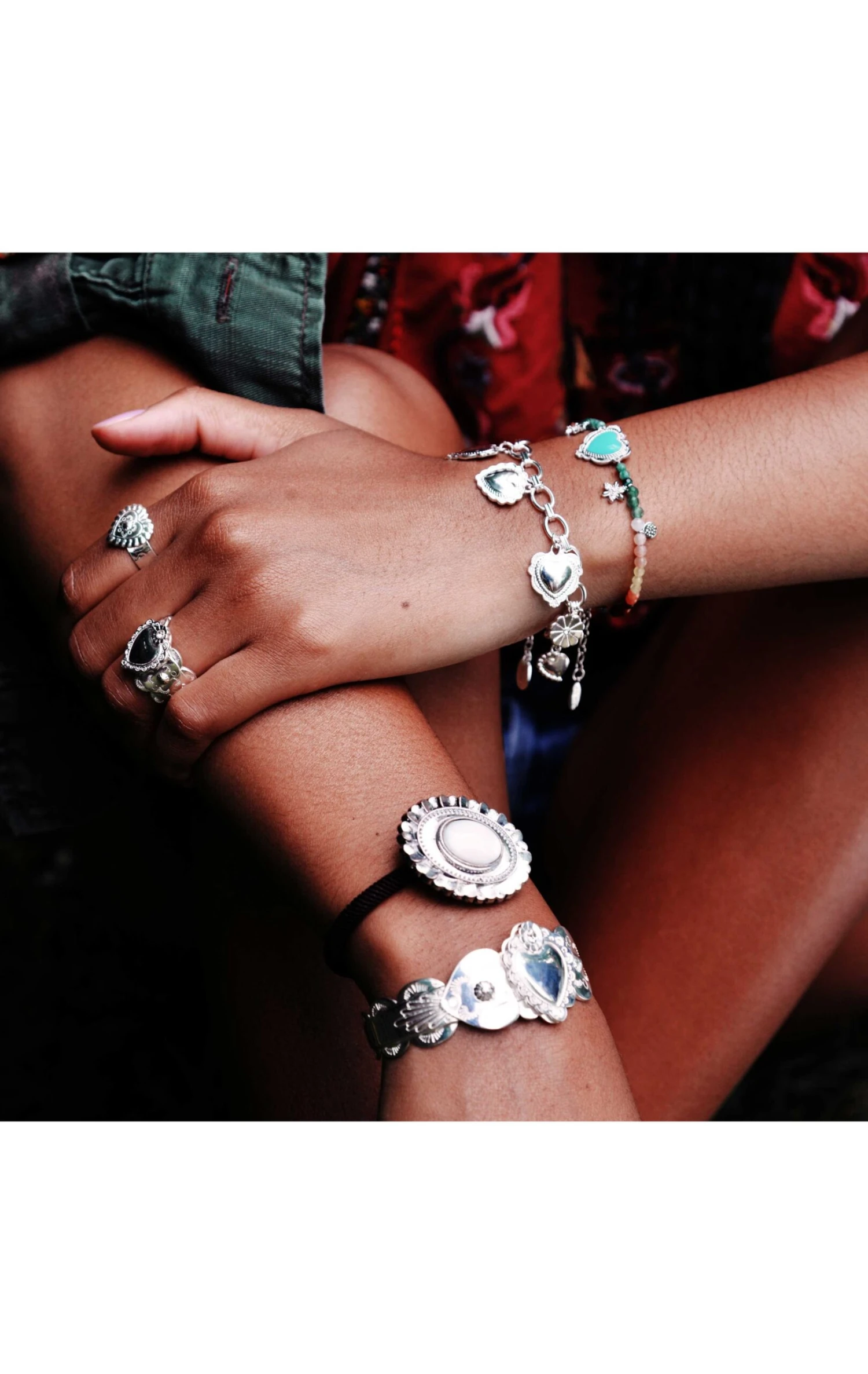Hipanema imagine pour vous des accessoires de cheveux haut de gamme twistés du chic décalé fidèle à l’ADN de la marque. On retrouve ici un élastique de cheveux marron, avec un cabochon argenté revisitant librement les codes Navajo, travaillé en oval en forme de fleurs avec des pétales. En son centre, une pierre véritable: en agate blanche, pour parer vos cheveux de vos précieux. Ce bijou est fait à la main.